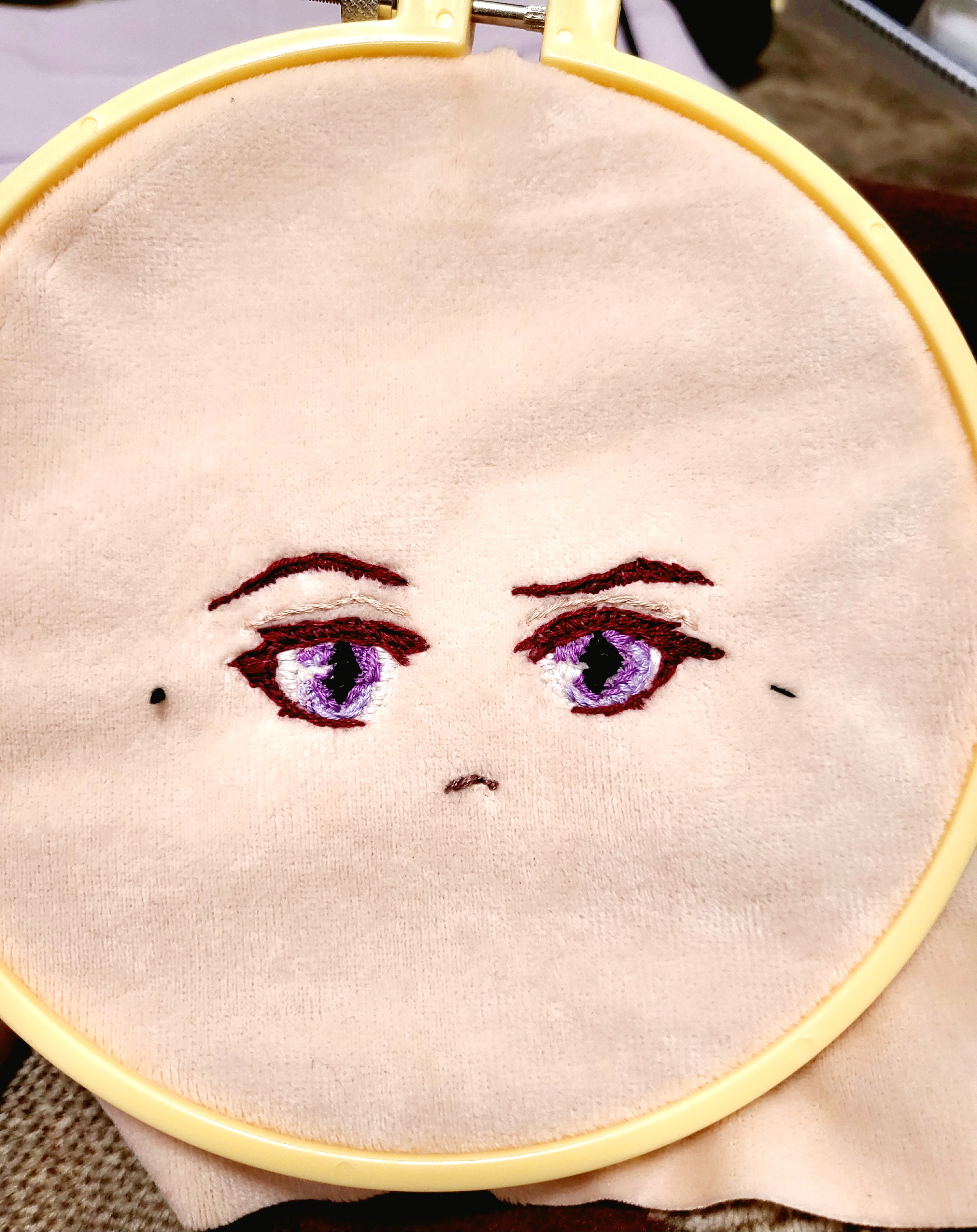 お顔の設計図を元に刺繍完了。